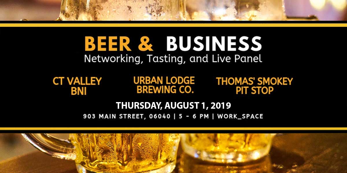 Join us at this free networking event for area professionals on August 1, 2019, 5:00–6:00pm at WORK_SPACE, 903 Main Street, Manchester. CT Valley BNI Chapter along with Urban Lodge Brewing Co. (Manchester), Thomas’ Smokey Pit Stop (Manchester) will be the event sponsors. Stop by for some delicious food and beer sponsored by local businesses and … Read more